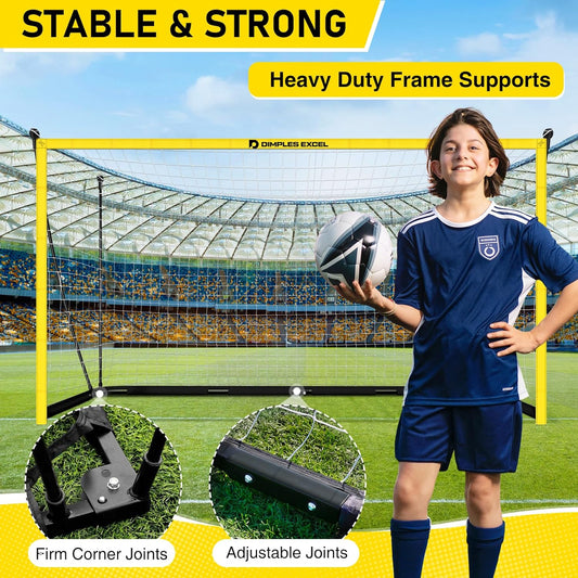 Dimples Excel Soccer Goals Kids Soccer Net for Backyard 7x5 FT, 5x3.6 FT, 4x3 FT, 3x2.2 FT